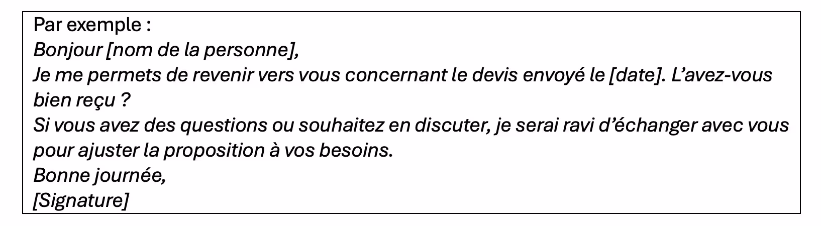 Astuce : pour suivre vos prises de contact, relances et résultats, utilisez un outil CRM (Customer Relationship Management), même gratuit.